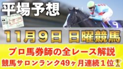競馬 【11月9日日曜競馬予想】想定11番人気101.2倍の超大穴馬を狙い撃つ‼️プロが平場全レース予想を無料公開!【平場予想】