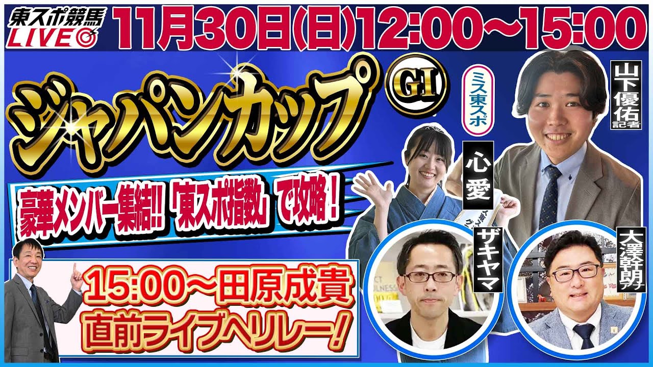 【東スポ競馬ライブ】「ジャパンC2025」強い馬がひと目で分かる東スポ指数! [解説:山下優佑記者] ミス東スポも出演! 11/30(日)12:00~15:00 田原配信へリレー!