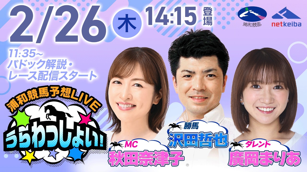 後半の予想番組では、多彩な出演者と浦和競馬トラックマンが今開催の傾向・ポイントの解説はもちろん、各々の予想の仕方に基づいて視聴者の皆様と一緒にお祭りのように浦和競馬を盛り上げます!