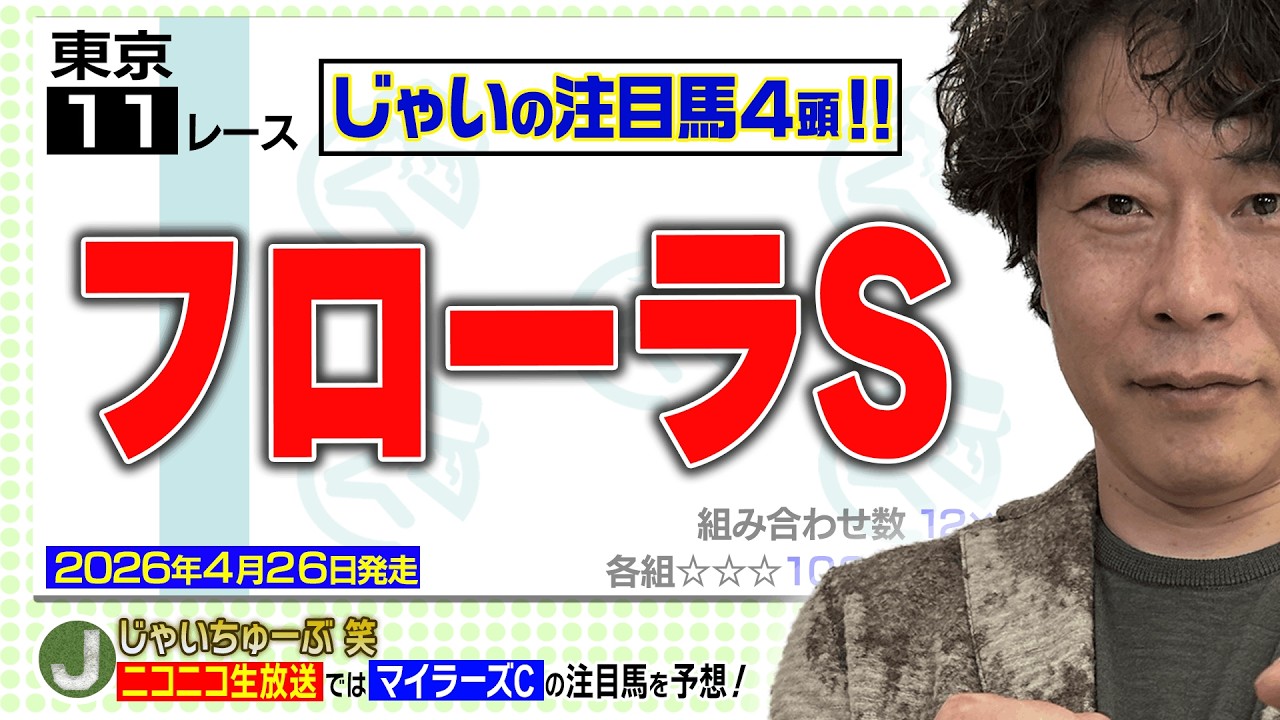 フローラSとマイラーズカップのじゃいの買い目と金額の発表、さらに好調のWIN5の見解が聞けるのはニコニコチャンネル!