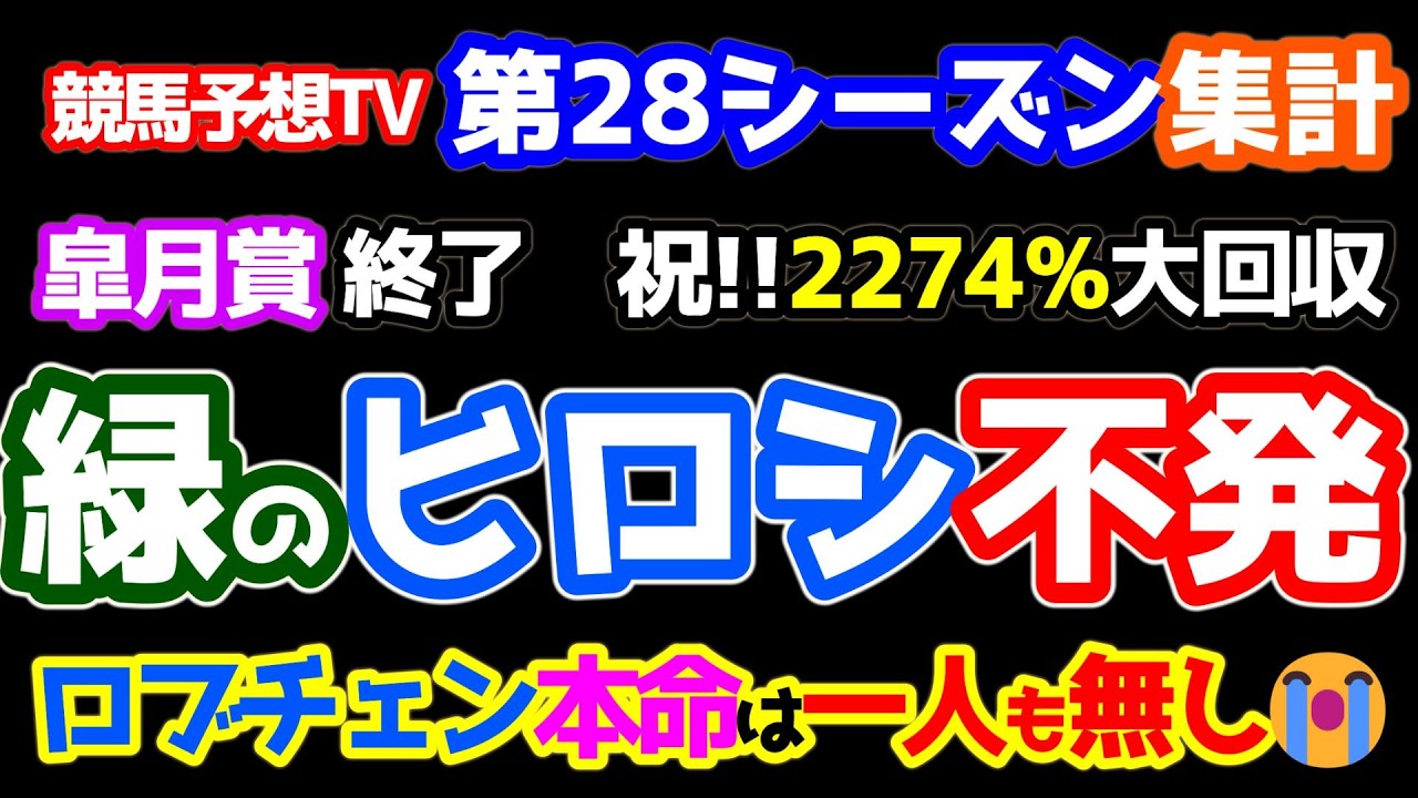 【競馬予想TV 第28シーズン集計】 悲報😭 ロブチェン本命が一人も無し😭😭  緑に染めたヒロシ不発😱 【皐月賞 終了】