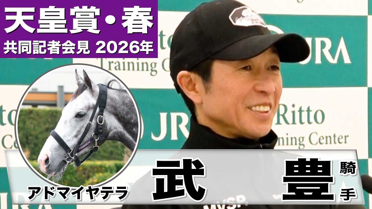G1天皇賞・春=2026年5月3日(日曜)京都競馬場、4歳上、芝3200メートルに出走するアドマイヤテラについて武豊騎手が共同会見に出席し質問に応えた。