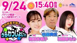競馬 2025年9月24日(水)浦和競馬予想LIVE「うらわっしょい!」12時55分パドック解説スタート・15時40分出演者登場! 浦和競馬×netkeiba予想特設サイトはこちら! 特設サイトでは、浦和競馬全レースのnetkeiba出馬表を掲載し、予想家の予想印・買い目・見解を無料特別公開! 浦和競馬予想LIVE「うらわっしょい!」 2025年度浦和競馬第... 2025.09.24 競馬